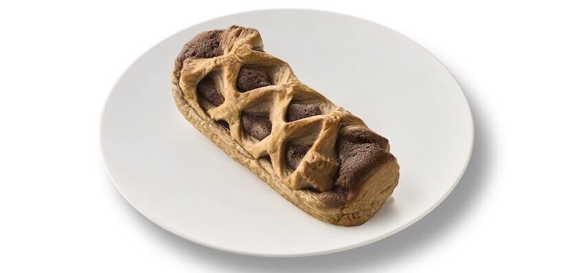 ココア入りヘーゼルナッツ風味ビスケット生地のメロンパンに、ヘーゼルナッツホイップとヘーゼルナッツチョコクリームをサンド。※数量限定
