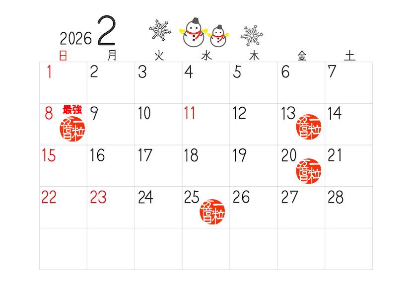 2026年2月の一粒万倍日は全4回