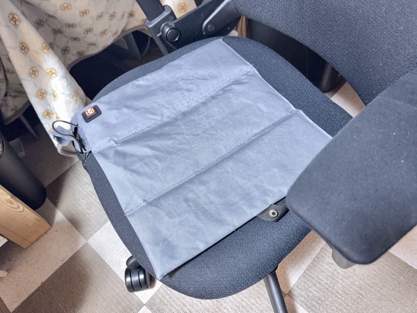 大きさは約38×35cm。座面のサイズとしてはやや小さめだが、底冷え対策としては十分すぎる大きさ。