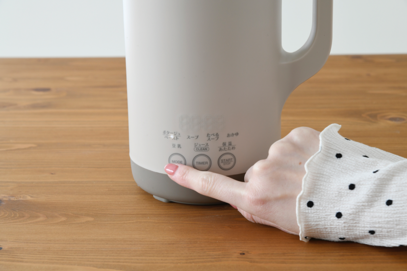 搭載モードは全部で7種類。特に新しく加わった【たべるスープ】モードは、具材のごろごろ感を楽しめるのが特長。なめらか系から具だくさん系まで、1台で幅広く対応。調理時間はディスプレイに表示されます。