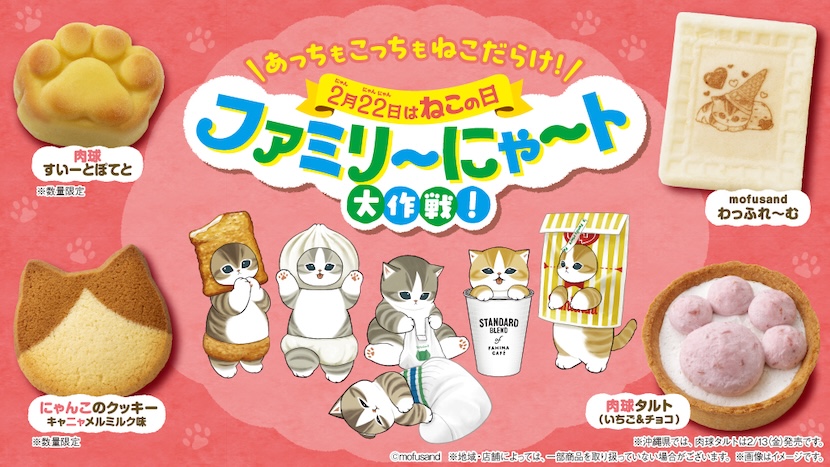 今年で4回目となる「ファミリ~にゃ~ト大作戦!」を2月10日から展開中。人気イラストレーター「mofusand」とのコラボ商品を中心に、17種類もの猫スイーツ&グッズが登場しています。