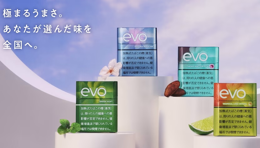 『EVO』シリーズに、2026年1月〜2月にかけて個性豊かな新フレーバー4銘柄が登場しました。新フレーバーが増えて、うれしさを感じていたら今回はちょっと様子が異なる模様。なんと「お客様投票キャンペーン」で人気投票、その中から1位の製品がコンビニエンスストアを含む全国販売へと進むのだそう。