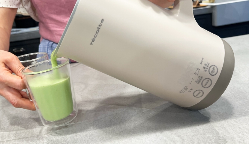 30分後にできあがったポタージュは、ムースのような口当たりでコクがあり、素材の甘みがしっかり感じられる味わいでした。空気を含ませるクレマ効果でコクが増すため、低脂肪乳でもおいしく作れるそうです。