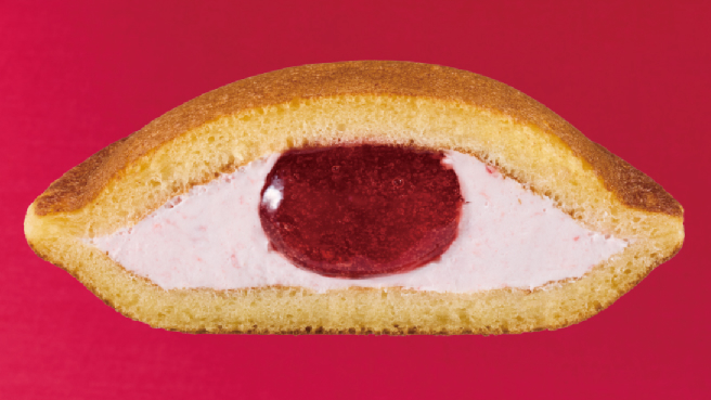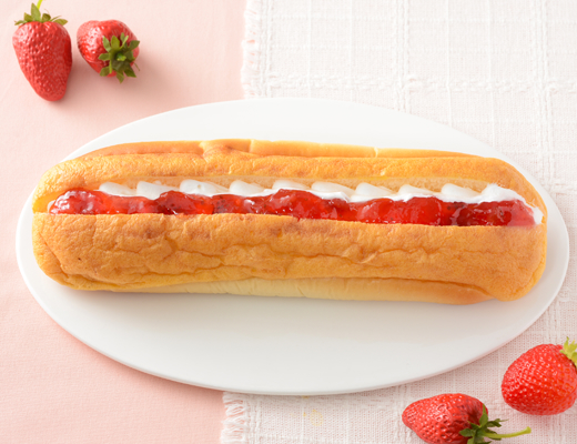 果肉感のあるいちごソースを、ふんわりしたシューロールパンにサンドした仕立て。