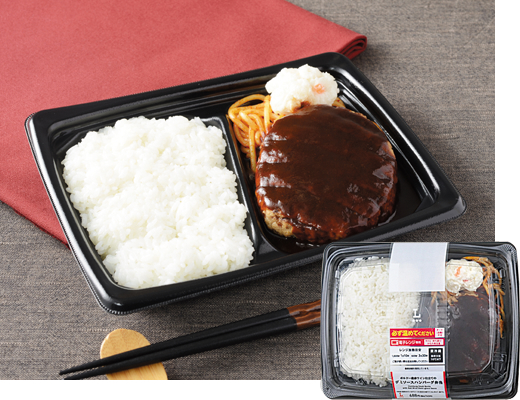 - 【お弁当】『ボルドー産赤ワイン仕立てのデミソースハンバーグ弁当』税込743円