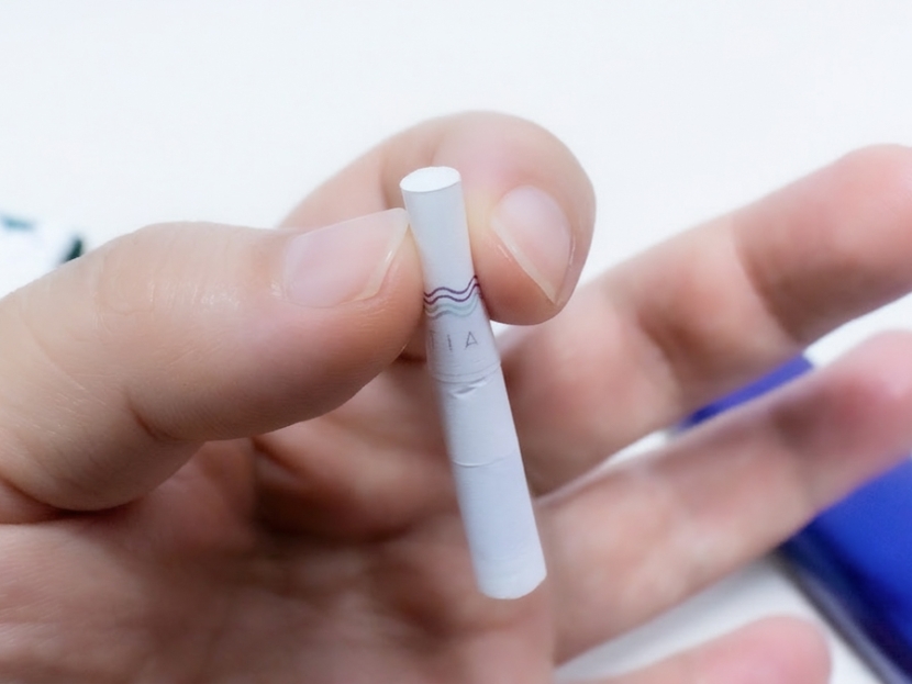 1本取り出して、フィルターにある●マーク部分を潰すと、吸う前からさわやかなブルーベリーの香りがフワッと広がります。「アイコス イルマ i ワン」にセットして加熱開始。ゆっくりと吸っていくと、フレッシュなメンソールが広がるとともに、穏やかでシンプルな紫色のベリー感がすっきりと香り、素直においしいと感じました。