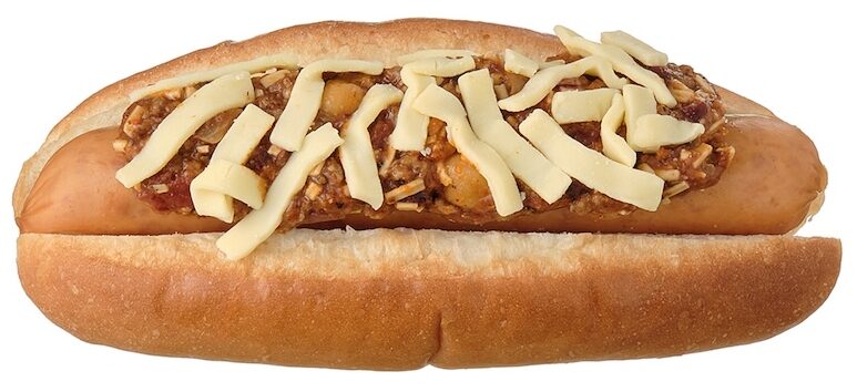 ソーセージにチリソースとチーズを合わせたドッグ。レンジアップでチーズがとろけ、辛味と旨み、まろやかさが一体となった食べ応えのある味わいなのだそう。メインや軽食によさそう!