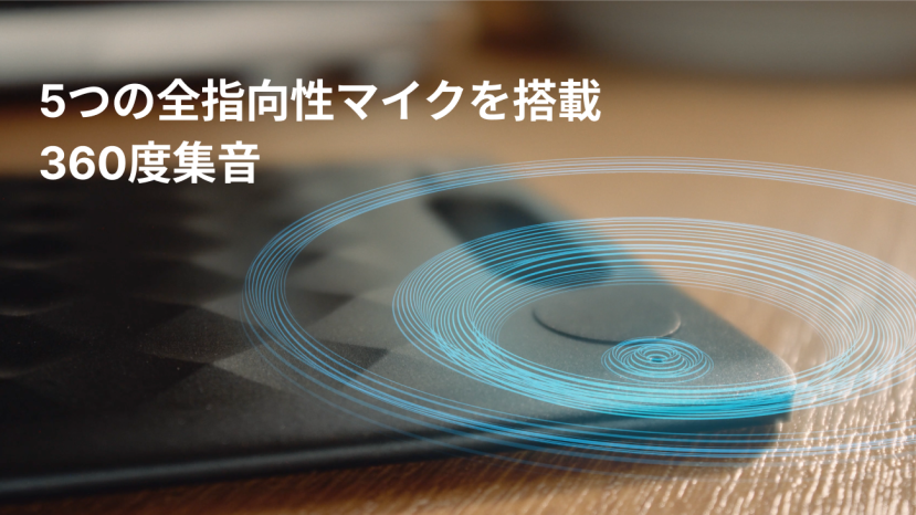 そうしたNottaエコシステムに加わるのが、『Notta Memo Type-C モデル』。360度の集音力を持つMEMSマイク(超小型の半導体マイク)4つ+骨伝導マイク1基の音の解像度は、会議室でテーブルに置いておくだけで、複数人の声をしっかり拾えます(推奨録音距離は3メートル以内)。