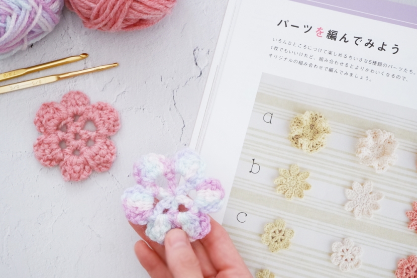 基本となる「こま編み」「長編み」が出来るようになれば、様々なデザインに展開していけます。モチーフやお花のパーツが編めるようになると、さらに編むのが楽しくなっていきますよね。
