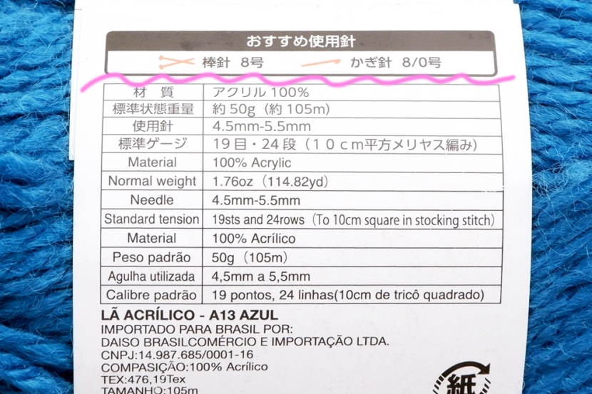 編み糸は様々な素材や形状、太さのものがあります。糸玉には必ずラベルがついているので、購入する時はラベルを確認してみましょう。素材、1玉の重さと糸の長さなどの記載があります。どのサイズの針がおすすめなのか記載があるものがほとんどなので、そこをチェックするのを忘れずに!