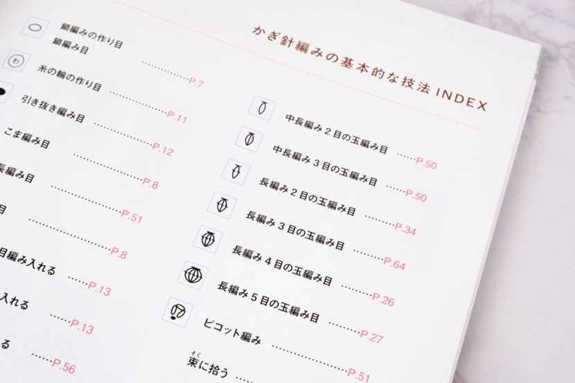 筆者は時々「かぎ針編み」を楽しんではいるものの、ブランクもあるタイプ。編み方を忘れてしまっていたところもあるのですが、そんな時にもこの本の出番! 解説が丁寧なので、しっかりと復習することができました。