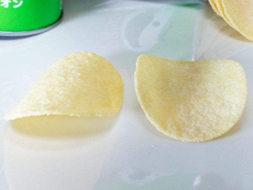 そのためコンパクトに積み重ねやすく、独特のサクパリ食感と濃厚な味の乗りが特長です。日本では他に「チップスター」(ヤマザキビスケット)や「ポテトチップスクリスプ」(カルビー)などが成型タイプになります。