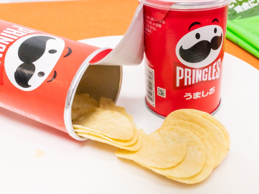 プリングルズ最大の特徴は、やはり「成型ポテトチップス」であることでしょう。通常のポテトチップスはポテトをスライスして作りますが、成型タイプは、乾燥したポテトフレークをマッシュポテト状にして型で成型することで、均一な形に整えているのが特徴です。