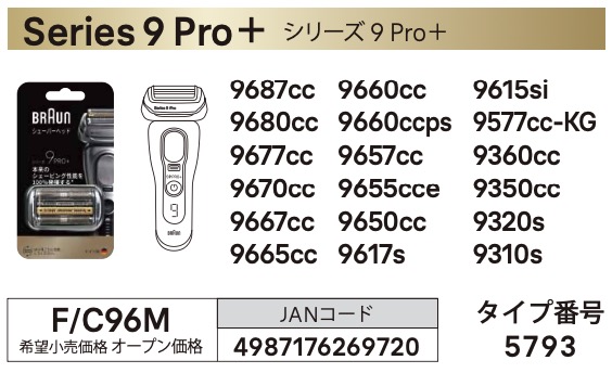 実は『ブラウン シリーズ9 Pro+』(2025年版)が採用している新替刃「96M」は、『シリーズ9』シリーズの各機種と互換性があります。『シリーズ9 Pro』『シリーズ9』『シリーズ9 Sport+』の多くの型番にも対応しており、本体を買い替えなくても替刃を96Mに交換するだけで、ブレないやさしい深剃りヘッドにアップグレードできるのは魅力です。ちなみに替刃交換は18ヶ月(1年半)が目安です。