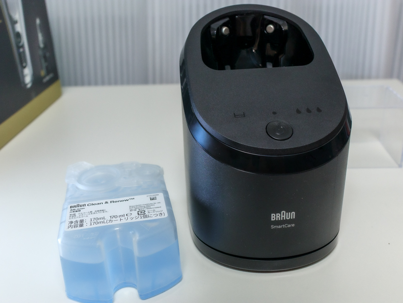 今回使用したのは、『ブラウン シリーズ9 Pro+ 9667cc』(約168×66×44mm/約207g・参考価格 税込8万円台中盤※編集部調べ・2025年10月24日発売)。高いですね。ただこの価格というのは、付属品に大きく左右されます。美顔器ヘッド、シェーバーケース、6in1全自動アルコール洗浄システム(洗浄液付き)などの全部盛りの9687ccは9万円台中盤ですが、付属品をシェーバーケースや充電スタンドなどのシンプル構成の9610sにすると税込4万円台中盤~から入手できます。