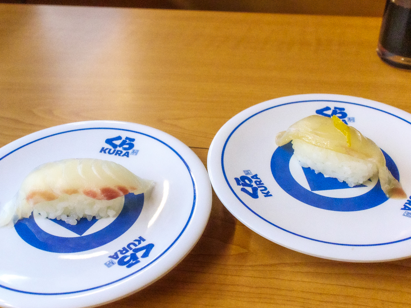 同じ桜鯛でも、柚子を効かせた「熟成 ゆず漬け桜鯛(一貫)」(税込160円)はまた別ものの魅力。桜鯛を醤油ベースのタレに漬け、柚子皮をトッピングした一皿で、ねっとりした食感と爽やかな柚子の香りが特徴です。