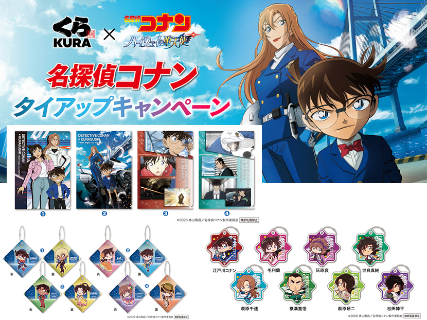 最後は、劇場版『名探偵コナン ハイウェイの堕天使』公開記念のコラボキャンペーンです。2026年4月3日(金)〜5月14日(木)まで、全国のくら寿司でキャラクターをイメージしたメニューやオリジナルグッズが楽しめます。