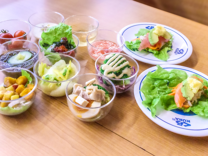 続いては、新登場の「健康食前の一皿シリーズ」(税込120円・2026年4月7日より発売中)。野菜や海藻などのミニサイズメニューが全12種並ぶ、健康志向の新ラインです。全品120円(回転レーン上では115円)で、「シャリ野菜」2品もリニューアルして復活しています。こちらは期間限定でははく、新メニューだそうです。