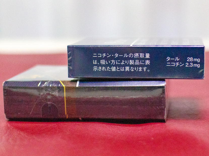 ただ箱の横を見ると、タール: 28mg ニコチン: 2.3mgの表記に驚いてしまいます。今となってはキツめのタバコの王道「セブンスター」でさえタール: 14mg ニコチン: 1.2mgだというのに、小柄なくせに倍スコアです。