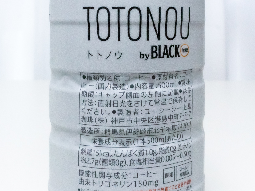 『UCC TOTONOU by BLACK無糖 PET500ml』はコーヒー原料だけなのに機能性!